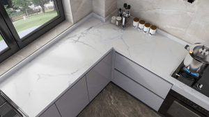Quartz is another highly durable and non-porous option that has gained traction among homeowners. This material is engineered from natural quartz and resin and offers consistent patterns and colours, making it perfect for contemporary kitchen themes. It’s resistant to staining and scratching, and unlike natural stone, it doesn’t require sealing.